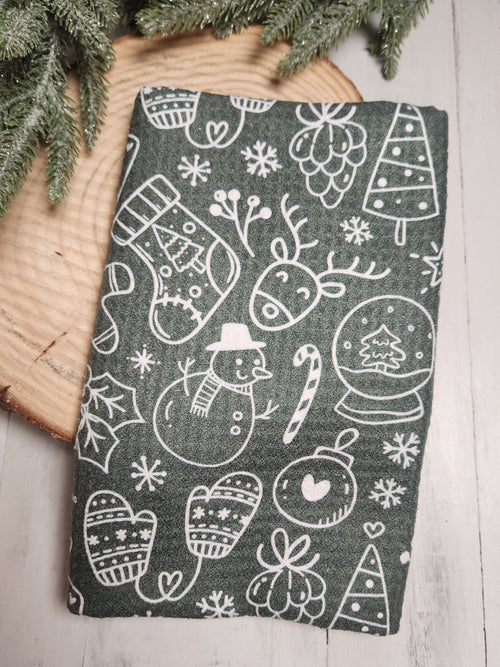 Waffle Kitchen Towel with Hanging Loop - Christmas Friends