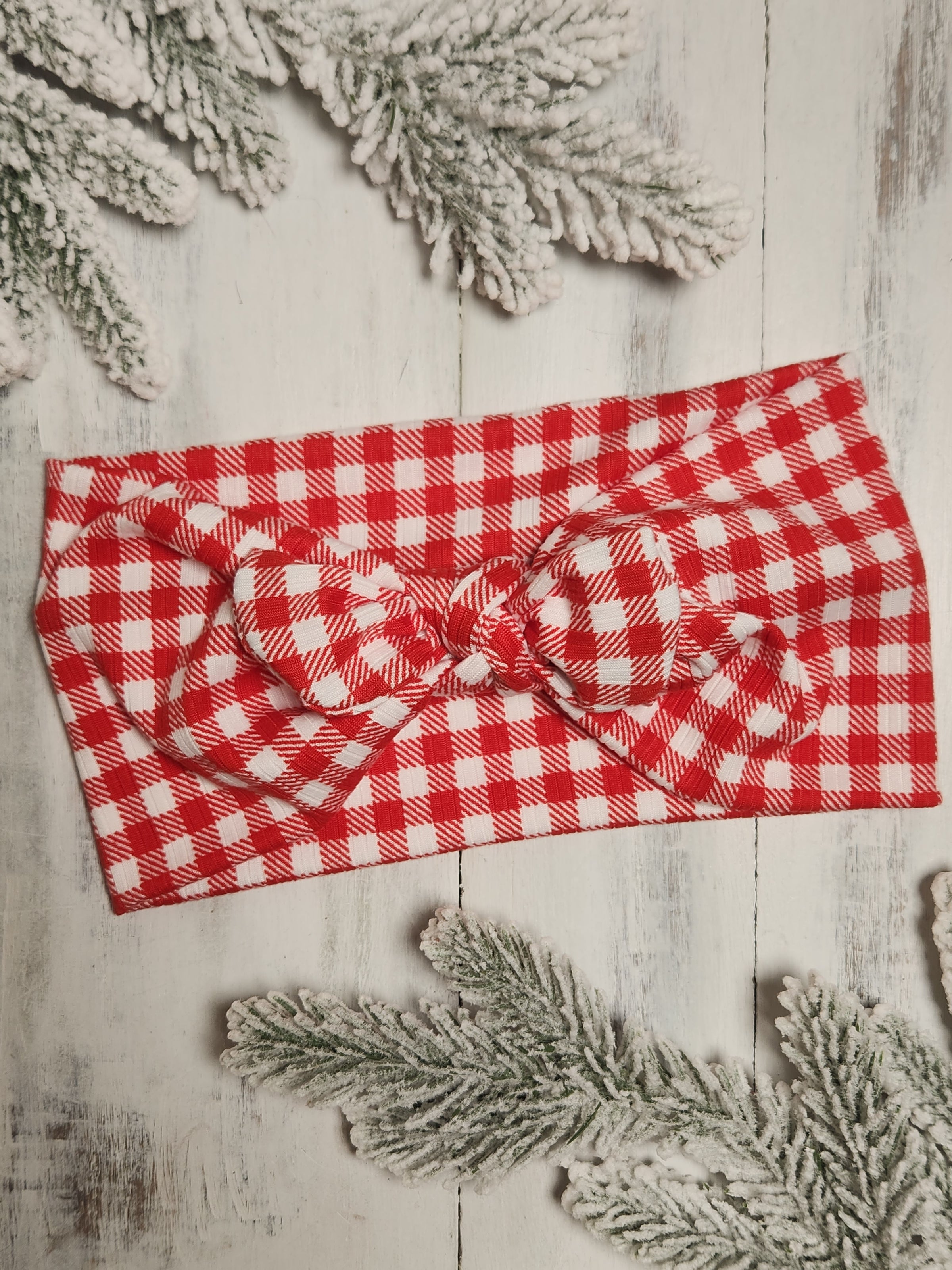 Red Gingham Faux Bow Headhug