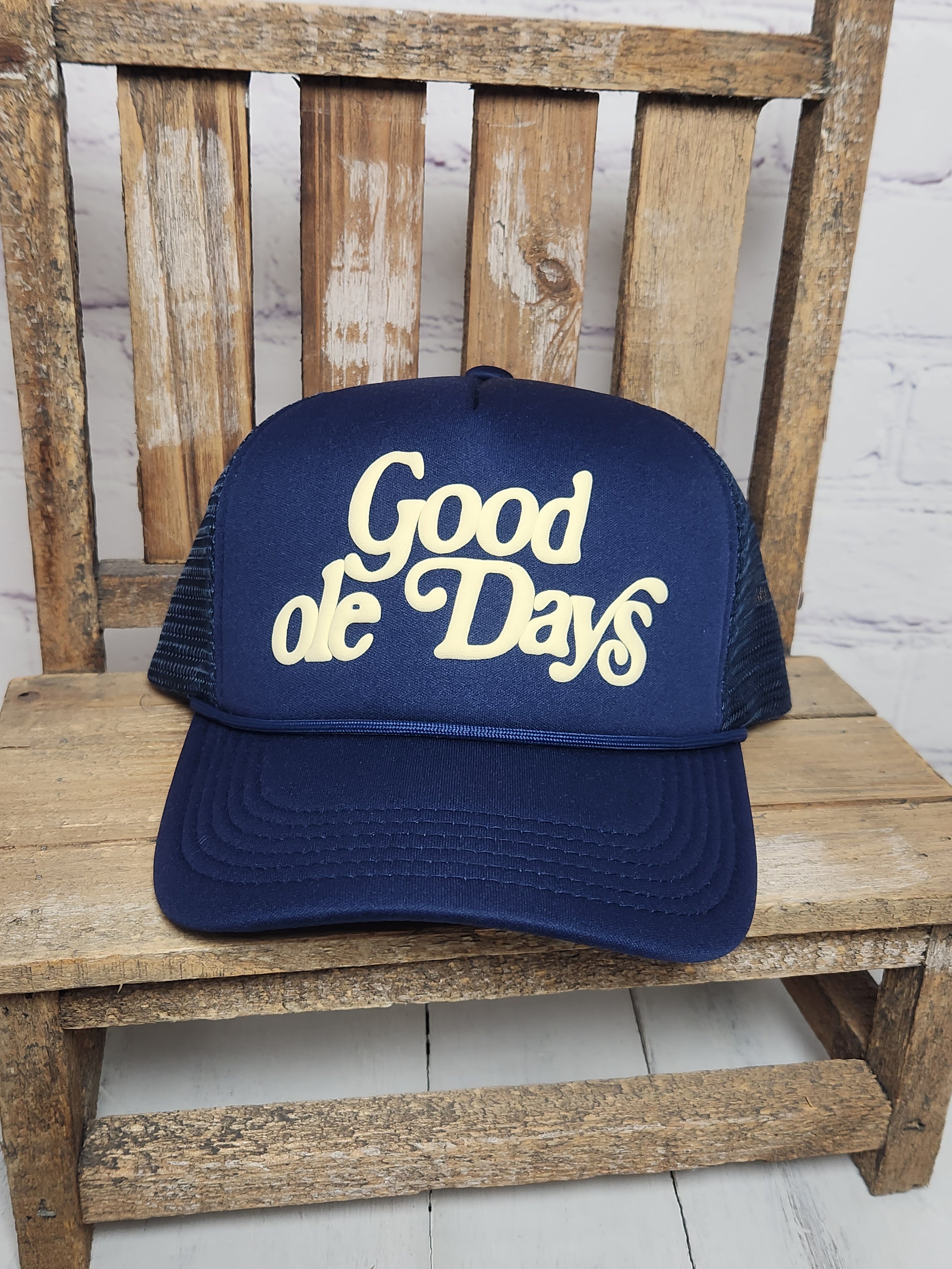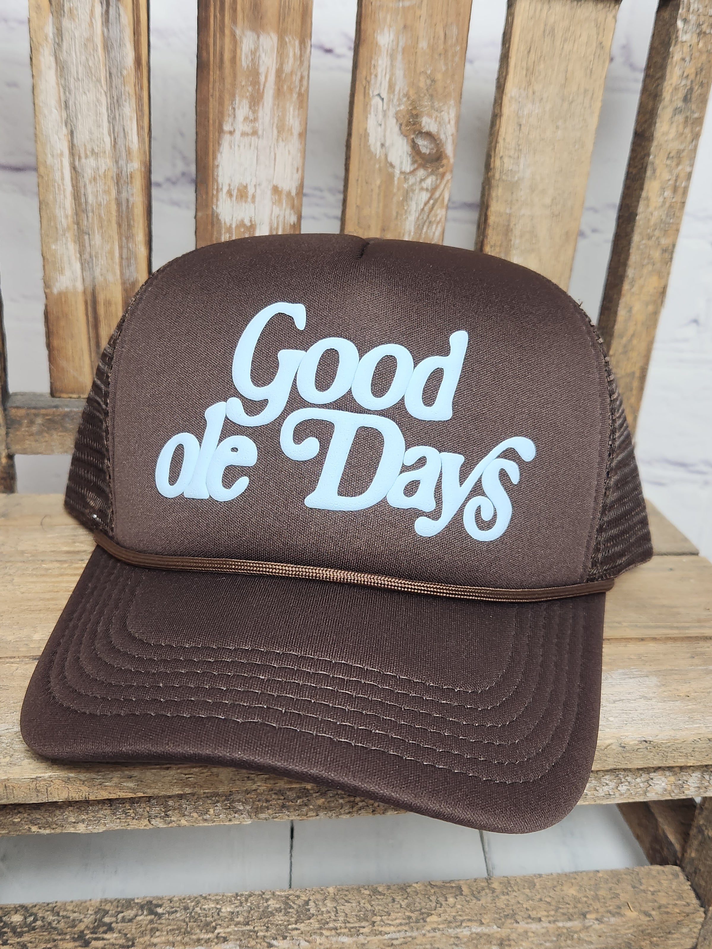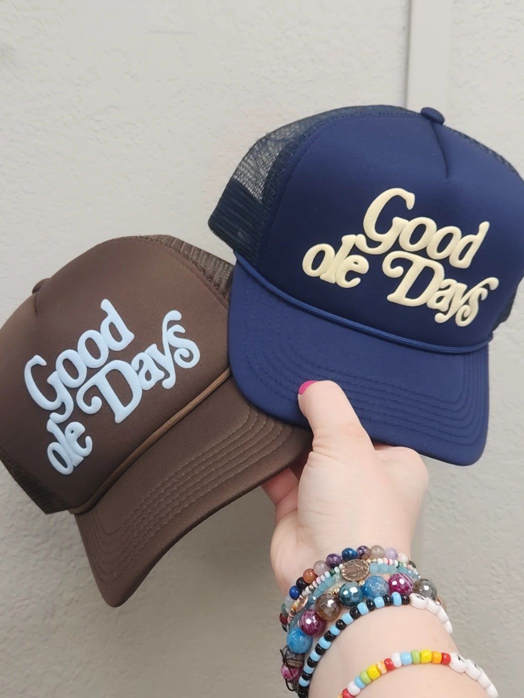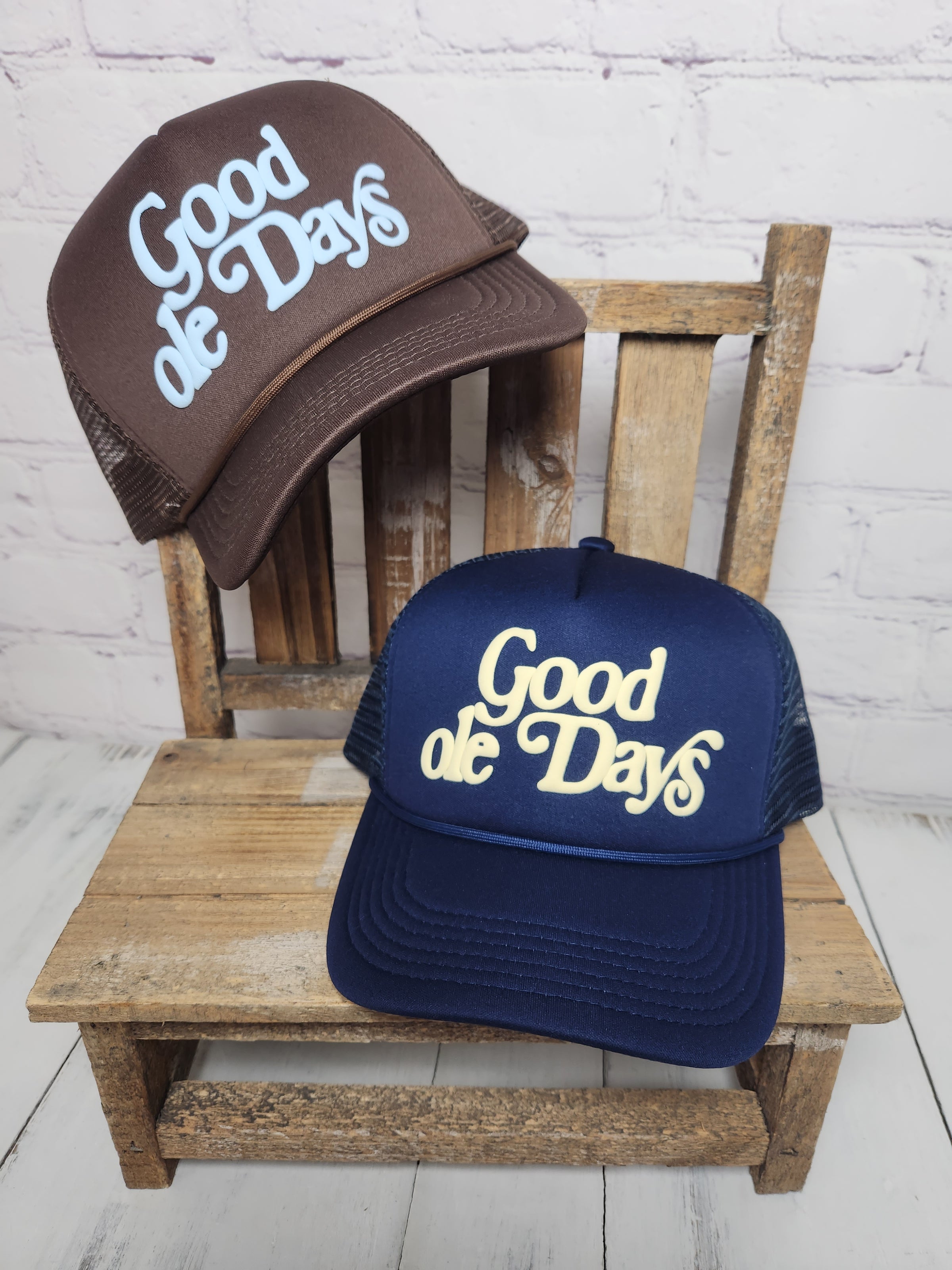 Our Good Ole Days trucker hats are giving effortless, small-town nostalgia in the best way. Designed with raised puff lettering for that bold vintage feel, these are the grab-and-go hats you’ll reach for on coffee runs, ball games, market mornings, and messy hair days.