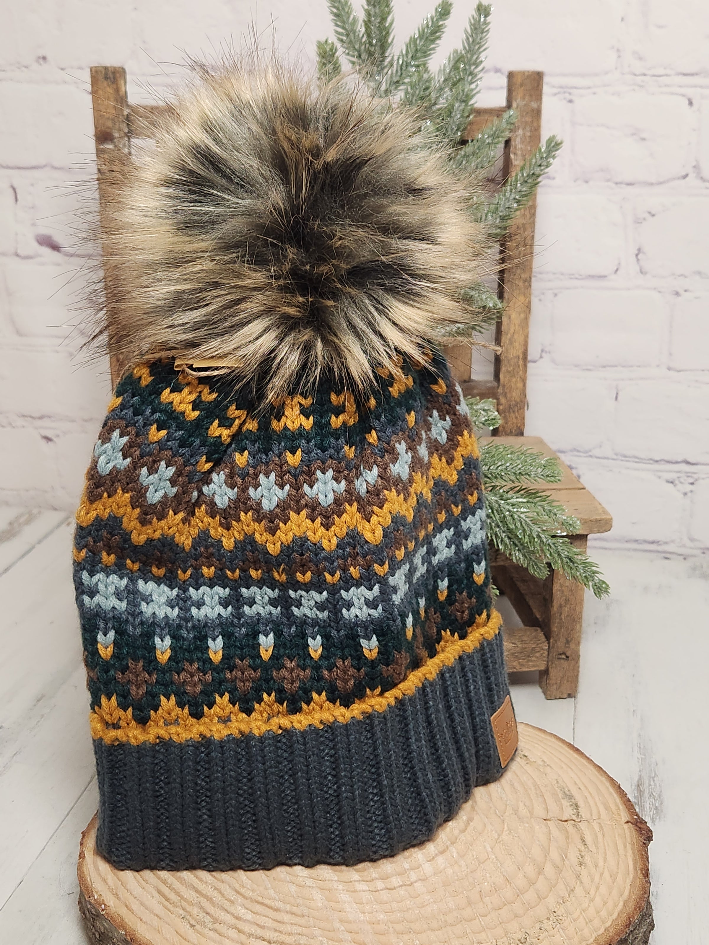 This ultra-cozy knit beanie brings together a classic Nordic-inspired pattern, rich seasonal colors, and the fluffiest faux-fur pom for that perfect winter touch. Soft, stretchy, and designed to keep you warm without the bulk, it’s the hat you’ll reach for on every chilly morning, holiday outing, and snowy stroll.