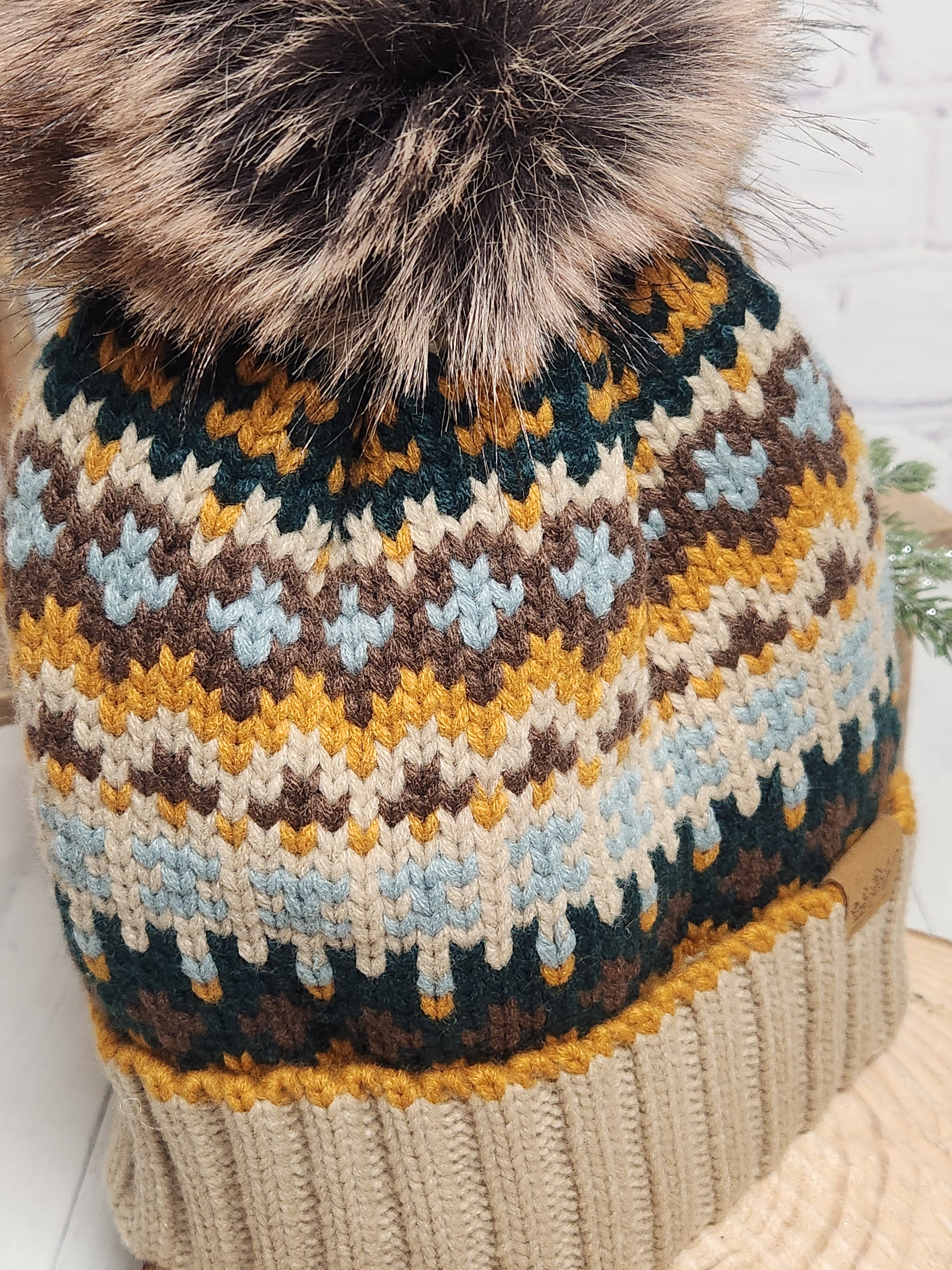 This ultra-cozy knit beanie brings together a classic Nordic-inspired pattern, rich seasonal colors, and the fluffiest faux-fur pom for that perfect winter touch. Soft, stretchy, and designed to keep you warm without the bulk, it’s the hat you’ll reach for on every chilly morning, holiday outing, and snowy stroll.