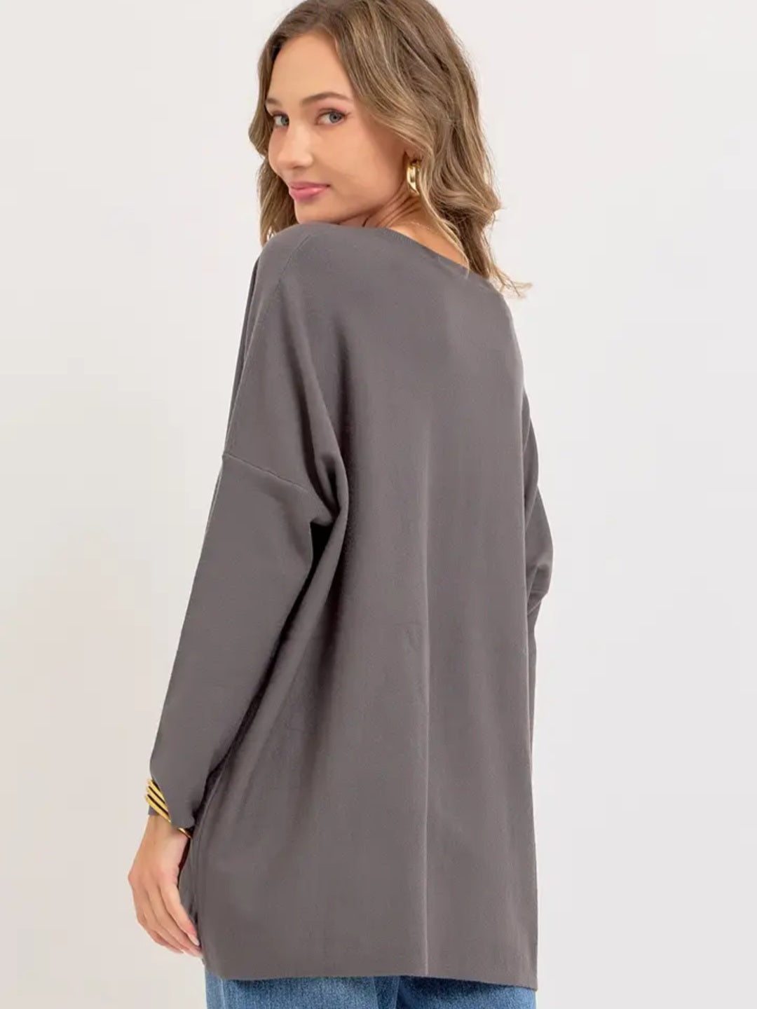 Everyone's favorite 2-pocket sweaters!! Their buttery soft feel & the comfortable fit, you will want to live in them! This top is a customer favorite year after year, you can't go wrong with a cozy oversized top with jeans or leggings. We personally have many colors in our wardrobes, we highly suggest these for you too! They also make a great gift!