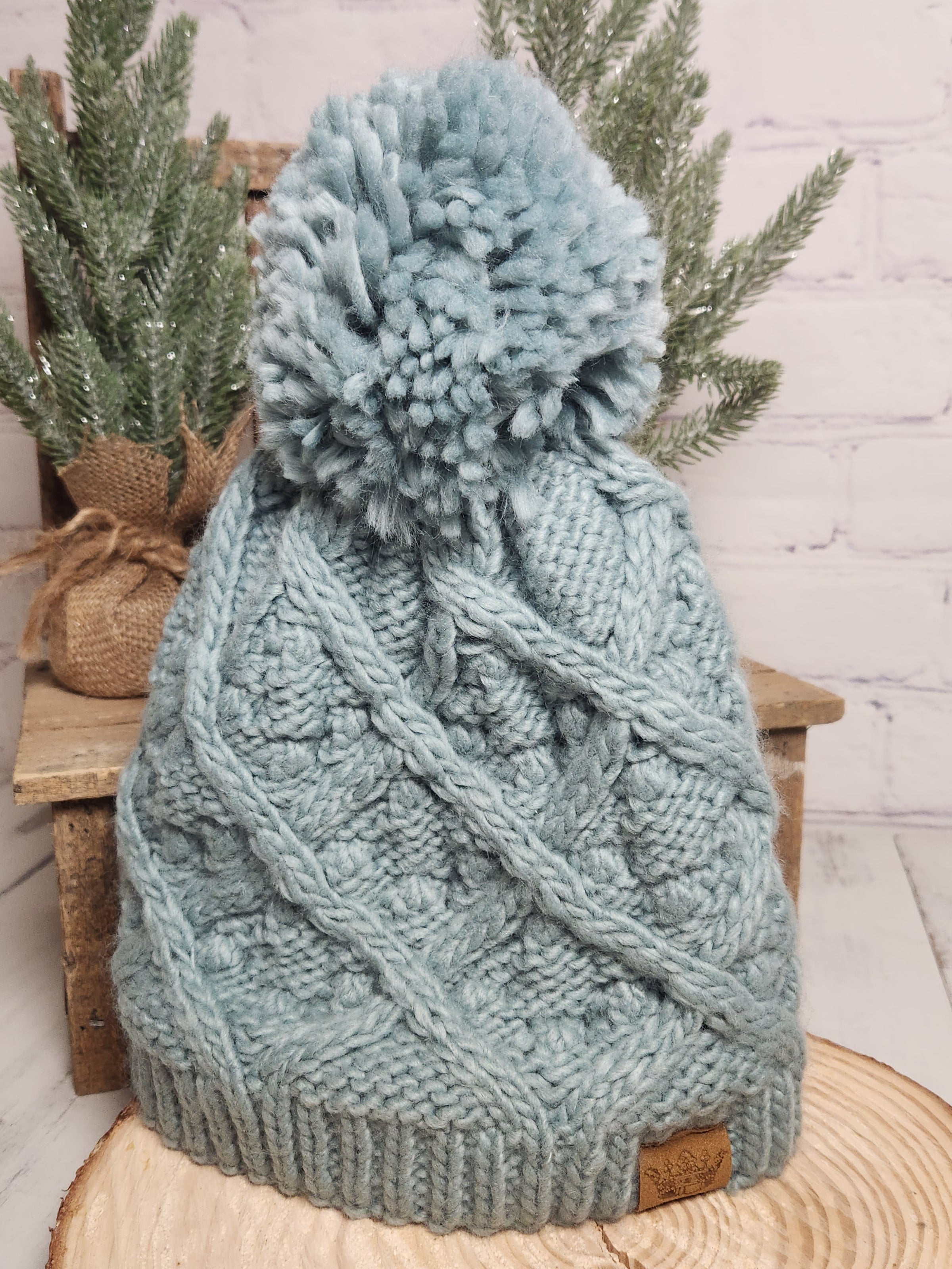Wrap yourself in winter warmth with our ultra-soft Everblue Cozy Pom Beanie. This beautifully knit hat features a classic cable pattern, a plush oversized pom, and—best of all—a fully fleece-lined interior for extra insulation on cold wintery days.
