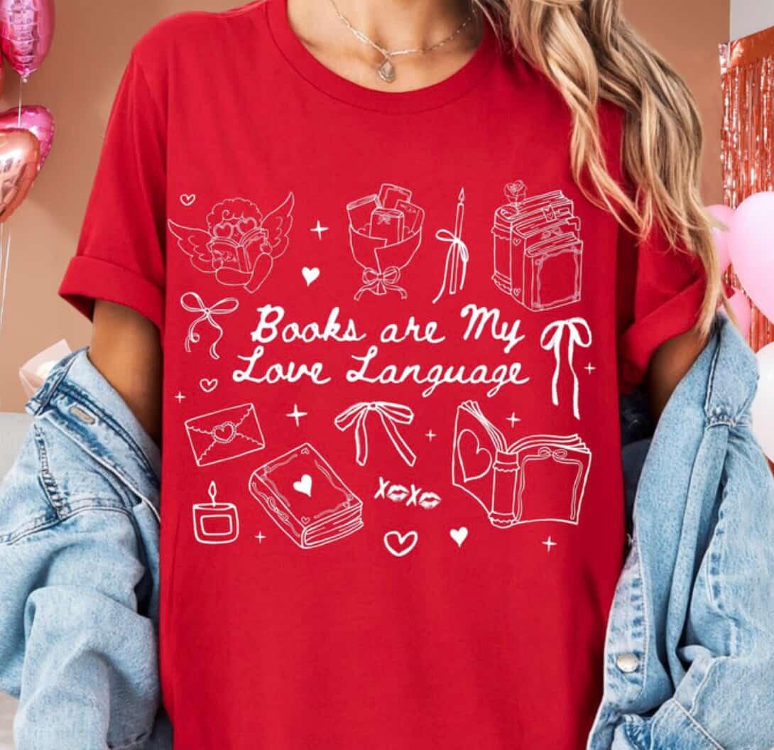 For the reader who believes romance lives between the pages. This charming red graphic tee features bookish icons and the sweetest phrase: Books Are My Love Language. It’s the perfect mix of cozy, clever, and heart-filled—made for library dates, coffee shop reads, and curling up with your current favorite story.