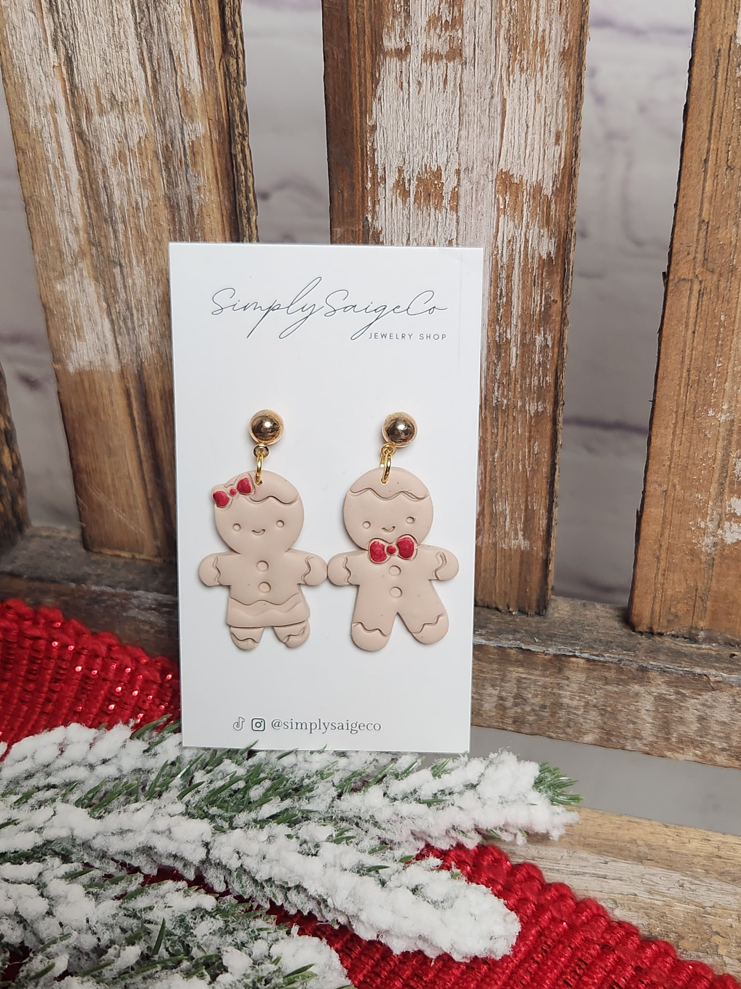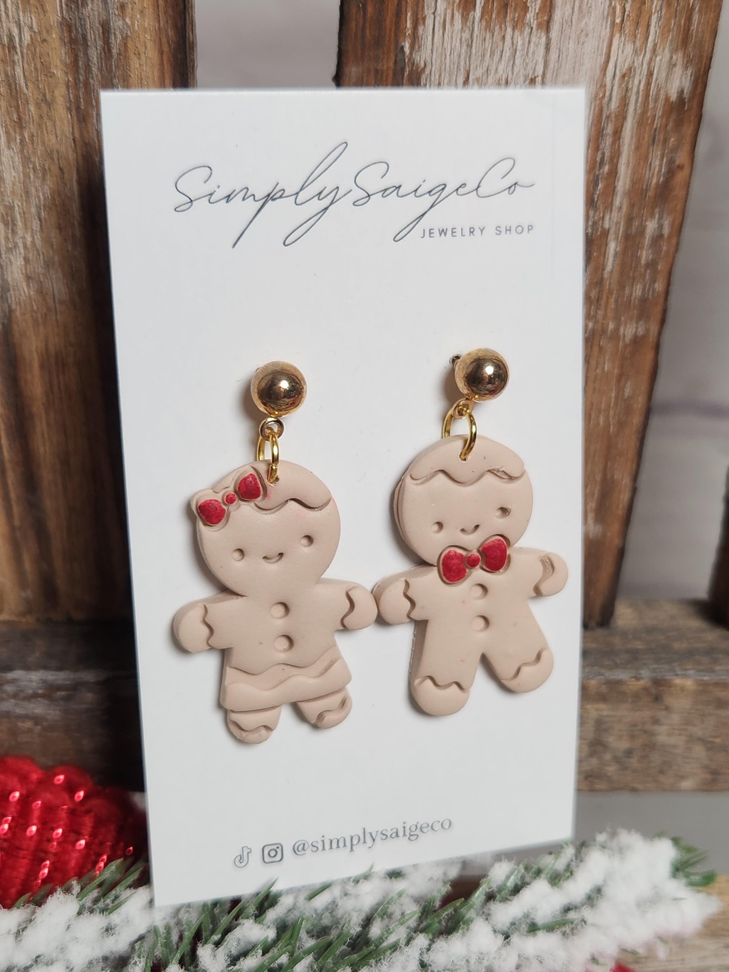 Gingerbread Girl & Boy Handmade Clay Earrings